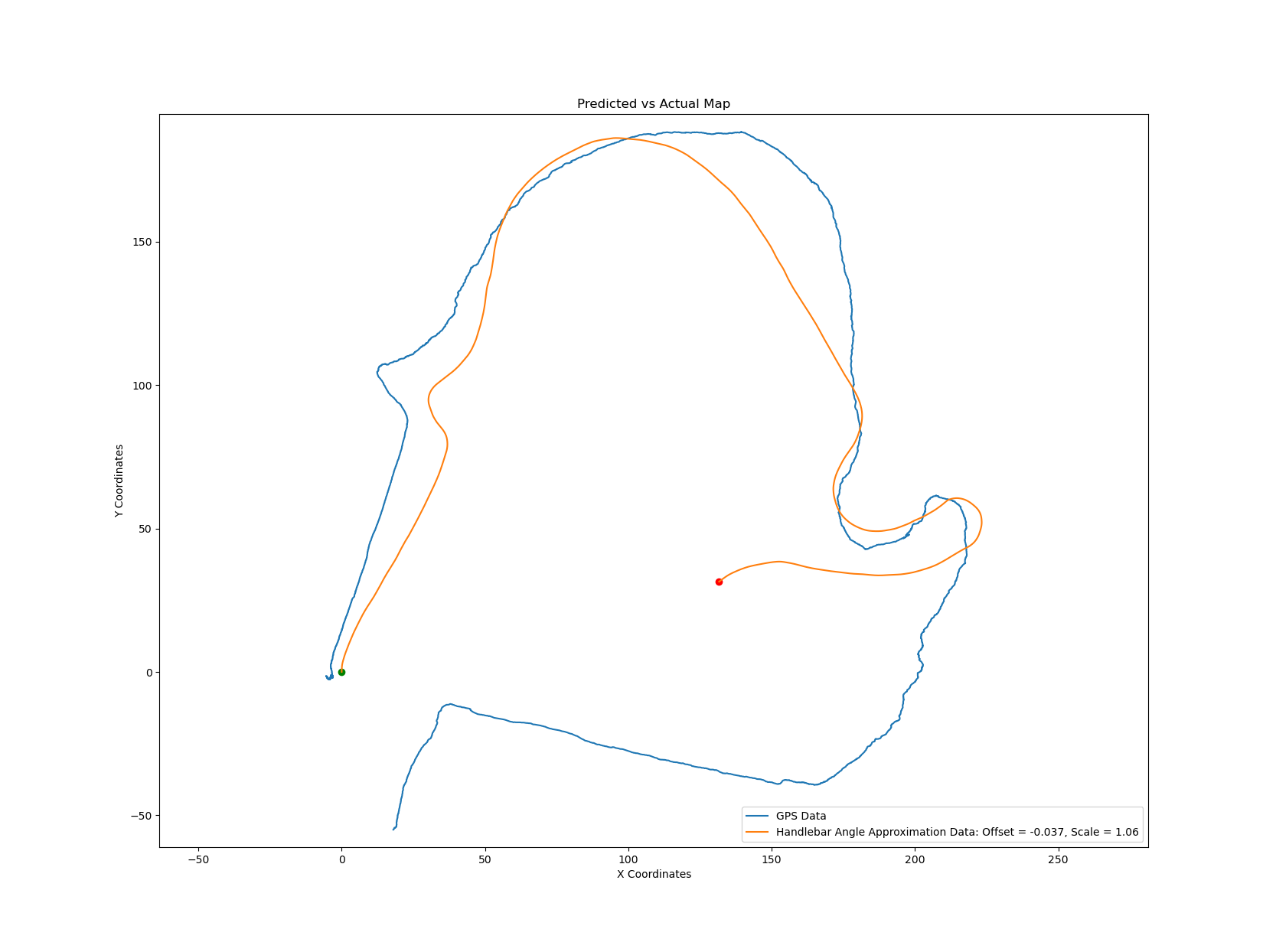 An example of a map we generated from our video data compared to GoPro GPS data!